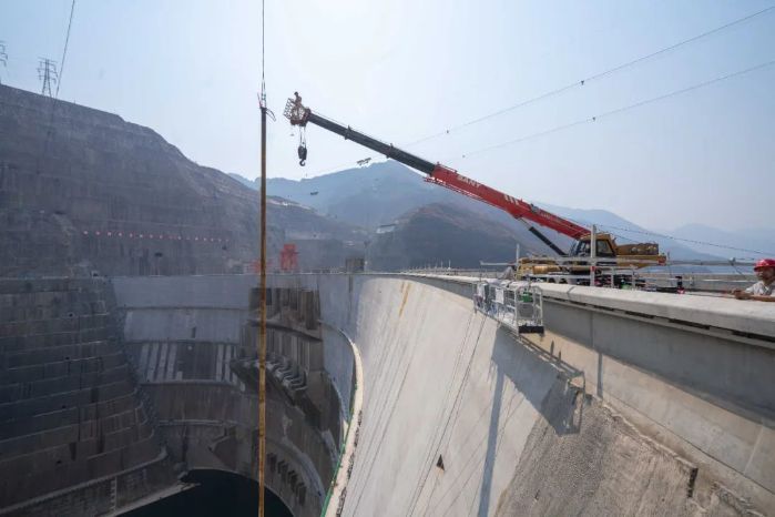“吊装这根36.74米芯样的时候,我们提前跟踪监测了大坝区域的天气、风速,挑选最合适的吊装时机,还选了技术最好的缆机操作手。”据裴磊回忆,混凝土芯样吊装那天,各方参建单位负责人守候在大坝现场,所有人的目光都集中在这根世界最长混凝土芯样上。