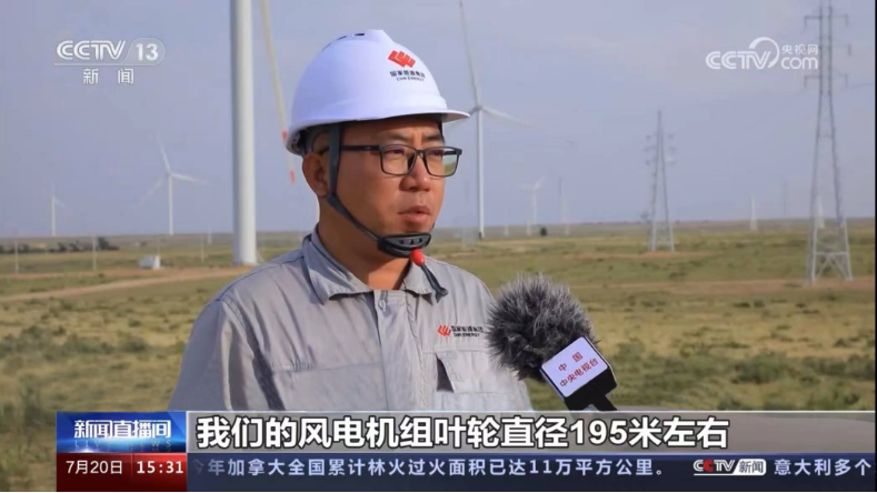 7月20日,应用联合动力UP5000-195风机的达拉特旗“黄河流域生态保护和高质量发展”恩格贝200兆瓦风电项目登上CCTV-13央视直播间。