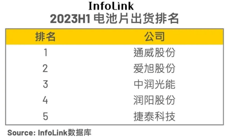 8月28日,Infolink 2023上半年电池片出货排名新鲜出炉,通威电池片出货量依然稳居排行榜第一。