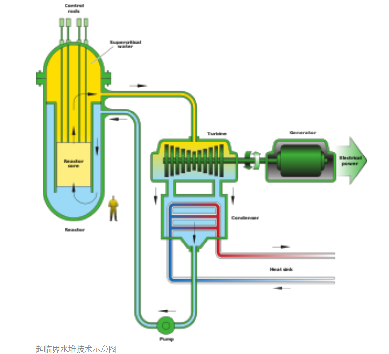 高度安全性:超临界水堆技术采用了自然循环的冷却方式,不需要依赖外部动力系统,减少了系统故障的可能性。超临界水堆的设计还考虑到了大规模事故的安全性,例如核熔毁等情况下,能够有效地控制核燃料的释放和核废料的处理。