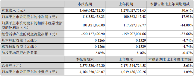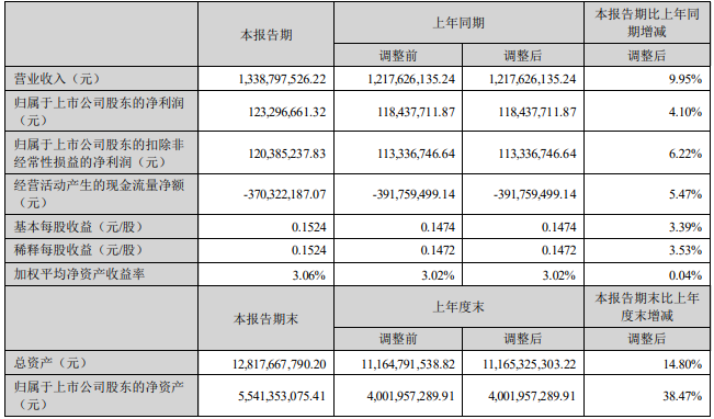 (一)报告期内主营业务情况 报告期内,公司实现营业收入约 133,879.75 万元,较上年同期增长 9.95%,实现归属于上市公司股 东的净利润约 12,329.67 万元,较上年同期增长 4.10%。