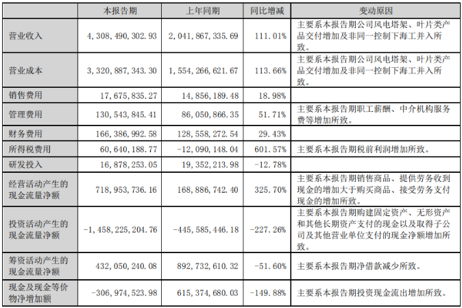 中国风电塔筒4大龙头企业天顺风能、泰胜风能、大金重工、天能重工2023年上半年成绩单公布,4家总营收93.78亿元,总净利润10.94亿元。除大金重工外营收出现下滑外,其余3家企业营收及净利润均同比上年出现上涨。具体情况如下: