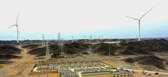 8月31日,新疆昌吉奇台北塔山海天达分散式风电升压汇集站送出工程送电。(韩雨 摄)