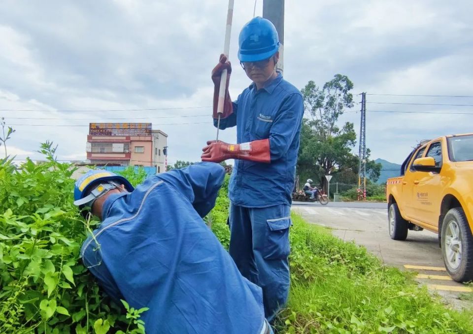 ▲8月31日,南方电网广东惠州惠阳供电局淡水供电所组织配电班对线路、设备进行隐患排查,及时清理线路飘挂物,确保安全稳定供电。(杨晅懿 吴海雄)