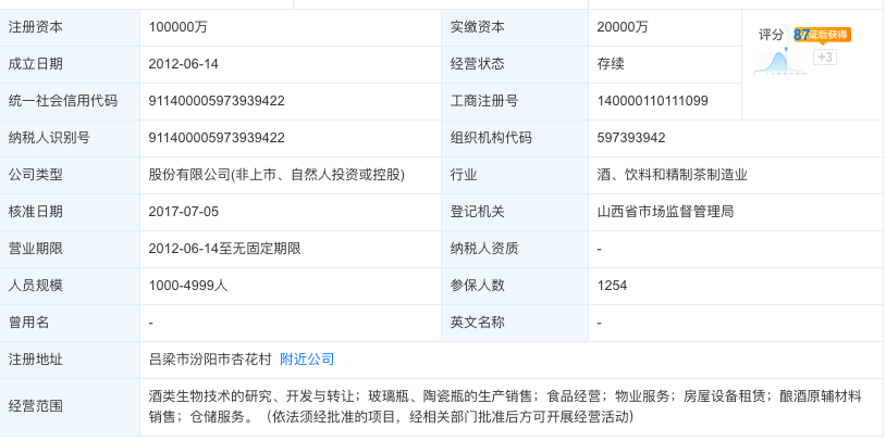事实上,疑团不止于此。汾酒集团官网表明,该集团以白酒生产销售为主,集团现有员工近10000人,下属5个全资子公司,11个控股子公司。