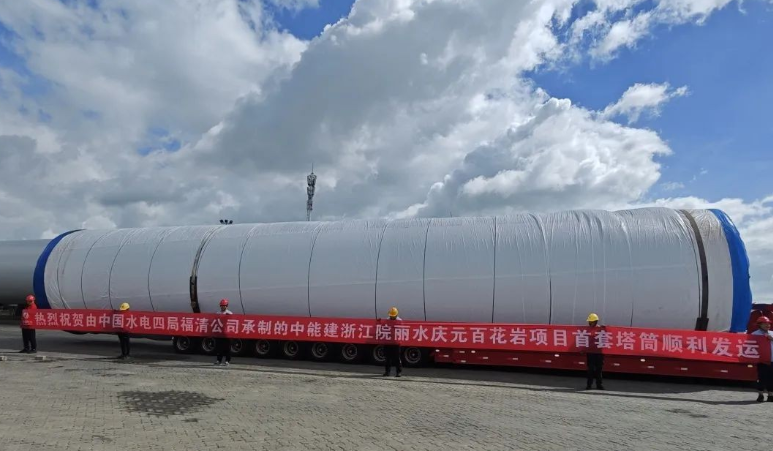 近日,由中国水电四局福清公司承制中能建浙江院丽水庆元百花岩项目首套塔筒顺利发货。