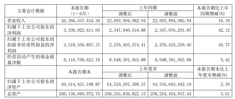 截至2023年6月30日,公司总资产2,661.37亿元,较期初增长77.83亿元;总负债1,705.50亿元,较期初增长58.14亿元。报告期资产负债率64.08%,较上年末增长0.32个百分点;归属于上市公司股东的净资产560.14亿元,较期初增长15.04亿元。