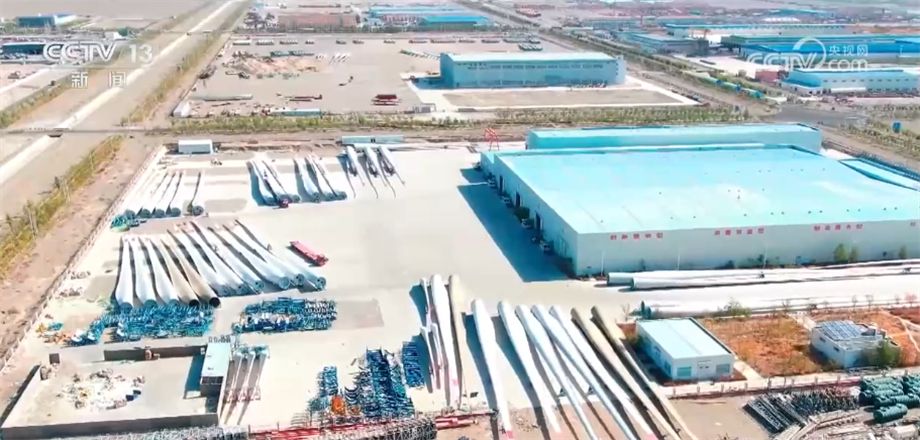 像这样的风电基地,在哈密还有三塘湖—淖毛湖风区、东南部风区,其中,东南部风区装机规模超过了500万千瓦。截至目前,哈密的风电装机规模超过1303万千瓦。风电产业的加速扩容直接带动了风电装备制造业的崛起。