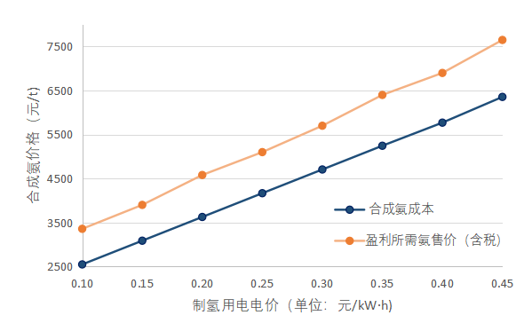绿氨若要实现经济可行,其成本还需要进一步压降。绿电合成氨成本与制氢用电电价关系如图所示。