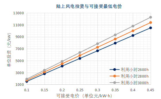 在保证风、光项目合理收益率的前提下,风、光资源禀赋优越地区已可以实现0.25元/kW·h左右供电价格。但是,考虑到绿电制氢系统需要配置较高比例储能系统,在当前投资水平下,实现0.2元/kW·h以下供电价格较为困难。风电、光伏造价与其可承受电价如图所示。