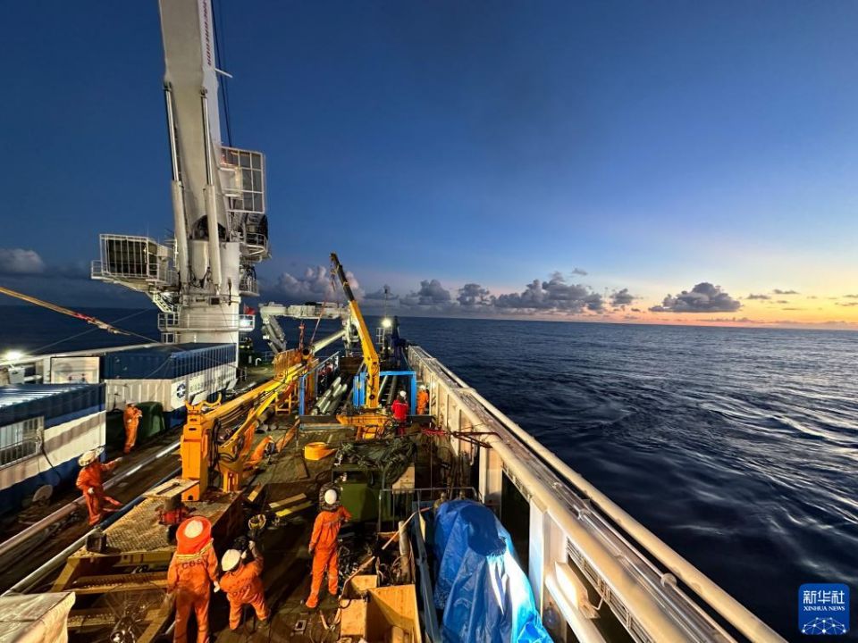 海洋温差能发电装置搭载“海洋地质二号”船进行海上试验前期准备(7月23日摄)。新华社发(奚晓谦 摄)