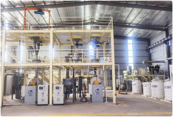 依 托西安交通大学 " 金属氢化物 @石墨烯复合固态储氢材料 " 原创成果,成永红教授成立西安一九零八新能源科技有限公司,让科技成果走出实验室、走向 " 生产线 "。2023 年 7 月,公司 2 条日产百公斤级钠钙基和铝钠基复合储氢材料循环中试线建成投产,实现 " 金属制备→金属氢化→复合材料制备→释氢副产物回收利用 " 全技术链条验证,材料储释氢重量密度最高可达 14% 以上,可为大规模氢气的存储与远距离的运输提供更有效的解决方案。目前已完成单套系统年产 3000 吨的工艺包设计,为后续大规模应用奠定了坚实基础。