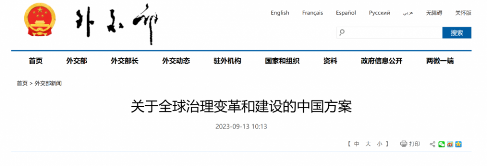 9月13日,外交部发布《关于全球治理变革和建设的中国方案》(以下简称《方案》)。