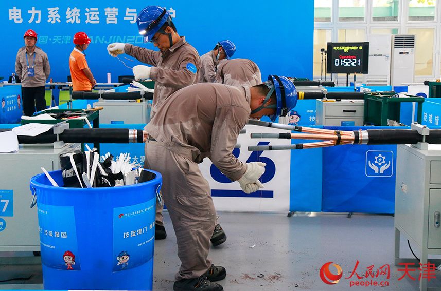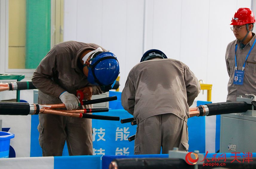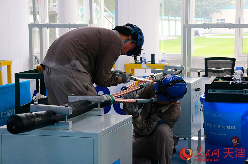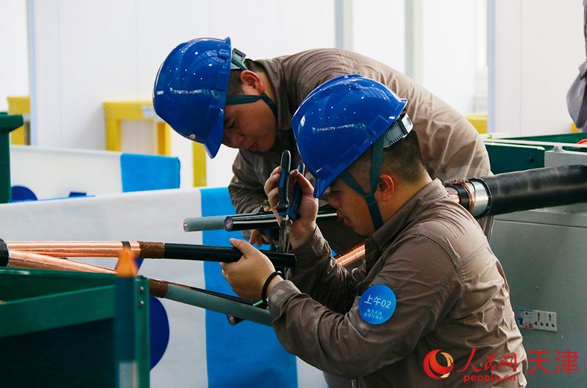 人民网天津9月17日电 (记者唐心怡)“此时此刻,场内正在进行的是10kV电缆中间接头制作项目。这次比赛将对中间接头安装的全部工艺进行全方位考察,包含了预处理项、冷缩接 头制作和绕包接头制作三个项目。”在第二届全国技能大赛“电力系统运营与维护”的比赛场馆外,解说员刘珮云在认真讲解。