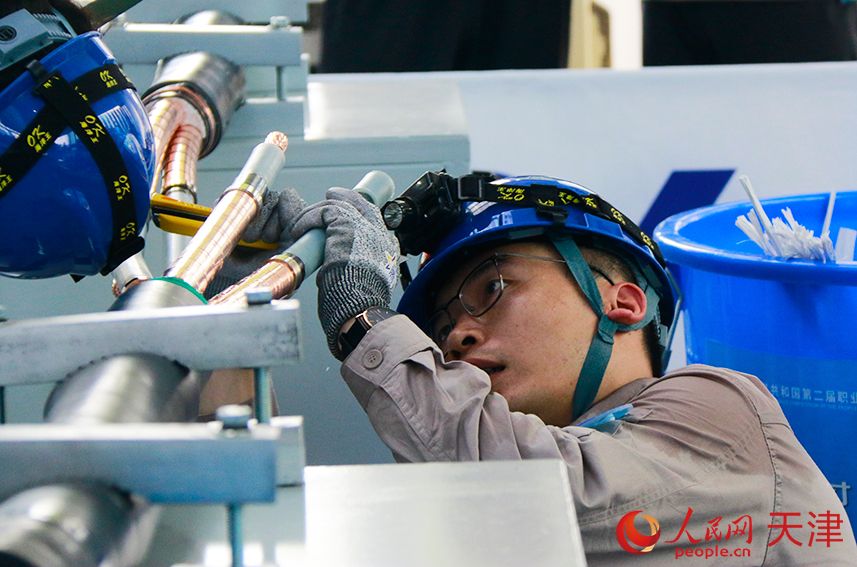 选手们在努力完成中间接头的制作。人民网记者 唐心怡摄