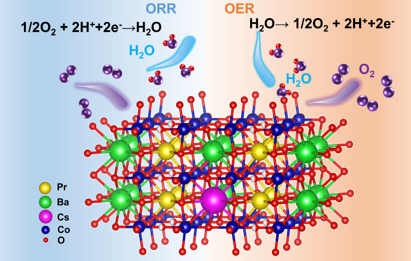 经 过反复比对、尝试摸索,紫金矿业与华南理工项目团队合成了含有10%铯等五种元素的全新化合物PrBa0.9Cs0.1Co2O5-δ。实验发现,铯掺杂 的新材料,极大提高了电解制氢的电化学性能和稳定性,在650℃、1.3伏,电解水制氢模式下,电流密度高达2.85安培每平方厘米。