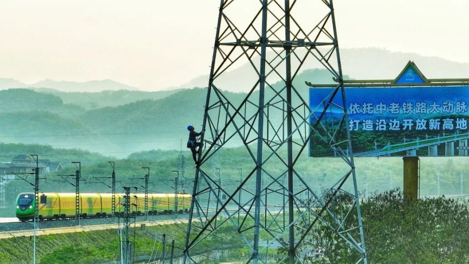 南方电网工作人员对中老铁路沿线线路进行运维。(李志杰)