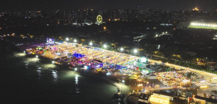 海口白沙门沙滩夜市灯火通明。杨永光 摄