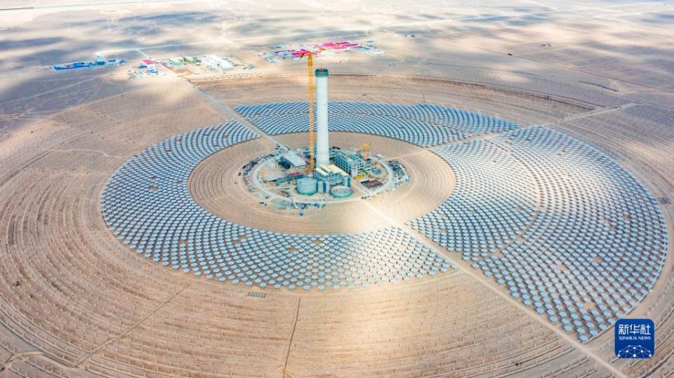 产业资讯 阿克塞汇东新能源光热+光伏试点项目吸热塔顺利结顶 2023-09-20 09:02:13 分享 这是试点项目吸热塔及镜场区(9月19日摄,无人机照片)。当日,中铁十一局承建的阿克塞汇东新能源光热+光伏试点项目吸热塔顺利结顶,为后续并网发电奠定了基础。该项目位于甘肃省酒泉市阿克塞哈萨克族自治县四十里戈壁,项目建成后,预计可实现年均上网电量17亿千瓦时。新华社发(金伟摄)
