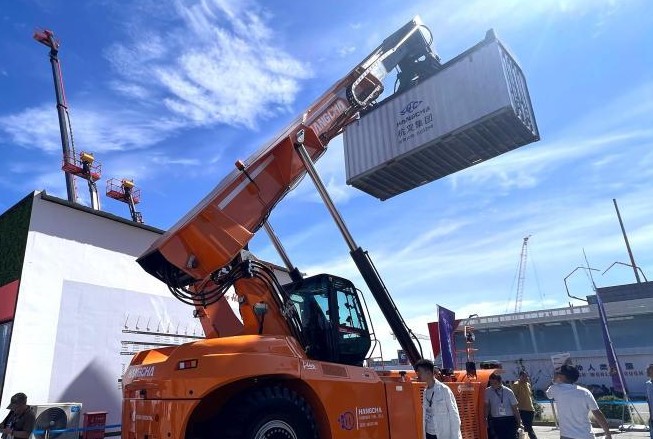 当日,广晟氢能联合杭叉新能源在展会上推出45吨氢燃料电池正面吊新品,并与中集氢能、天养新能源签署港口应用及配套支撑战略合作协议。该产品是现今全球首 台最大氢燃料电池工业车辆起重设备,不仅填补了该领域的国际空白,也解决了港口大型起重设备高能耗、高排放的痛点问题,为建设智慧港口、绿色港口贡献新的 力量。