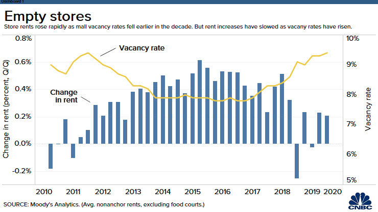 在过去的十年里,随着更多消费者将购物行为从实体店转移到亚马逊网站上,美国购物中心呈现出两极分化趋势。RadioShack、Toys R Us和西尔斯等相继破产。与此同时,由于零售商寻求削减成本,数以万计的商店采用停电等被迫举措。