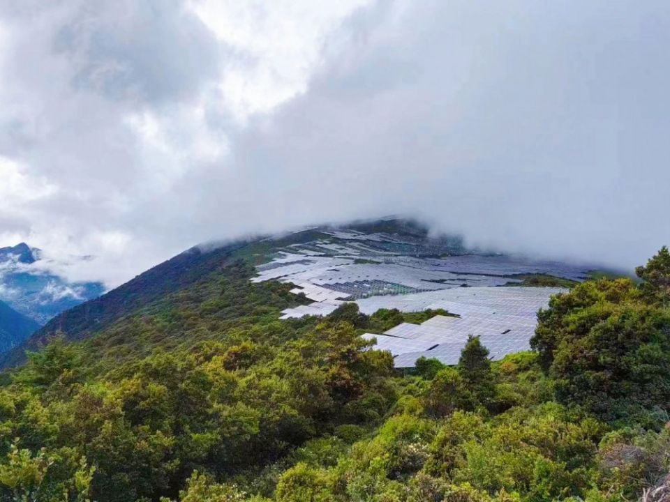 群山荟萃中,位于四川省甘孜藏族自治州九龙县境内的“水光牧互补”光伏电站项目正在火热建设中。已安装好的组件整齐排列,如一条闪着波光的蓝色绸带,为山林增色。项目装机总容量为463.18MW,全部采用天合光能2382mm中版型210R至尊580W系列组件。一期项目装机容量为390MW,投产后平均年发电量可达约6.6亿千瓦时,同时每年将减少使用19.97万吨标准煤,减少54.94万吨二氧化碳排放。