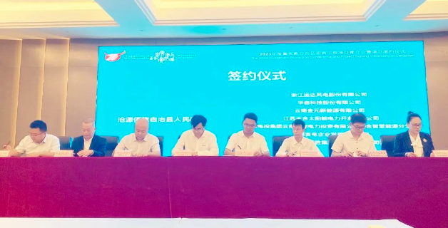 10月10日,2023年沧源佤族自治县招商引资项目推介会暨项目签约仪式在云南临沧举行,格莱特新能源副总经理杨朔代表华自科技与沧源佤族自治县人民政府、浙江运达风电股份有限公司签署分散式风电开发项目(规划总装机容量约300MW)合作框架协议。