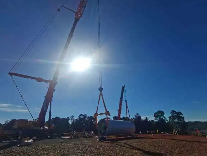 老挝在本国内风电项目领域可借鉴经验较少,因此该项目汇集了多个国家的工作团队,项目施工过程中面临着语言、技术标准、法律法规存在较大差异等多重困难。中核机械工程项目团队加强与协作方的沟通交流,大力组织协同配合,最终克服各项困难,完成项目首吊前期准备工作。