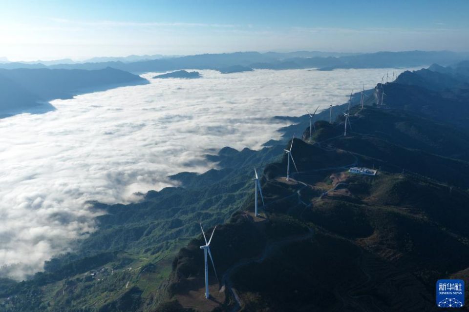 产业资讯 重庆黔江:发展清洁能源 助力乡村振兴 2023-11-02 11:18:49 分享 11月1日拍摄重庆市黔江区五福岭风电场晨景(无人机照片)。近年来,重庆市黔江区走绿色低碳发展之路,发展清洁能源产业,在高山地区建起风电场、光伏发电站,为乡村振兴注入新能源。新华社发(杨敏 摄)