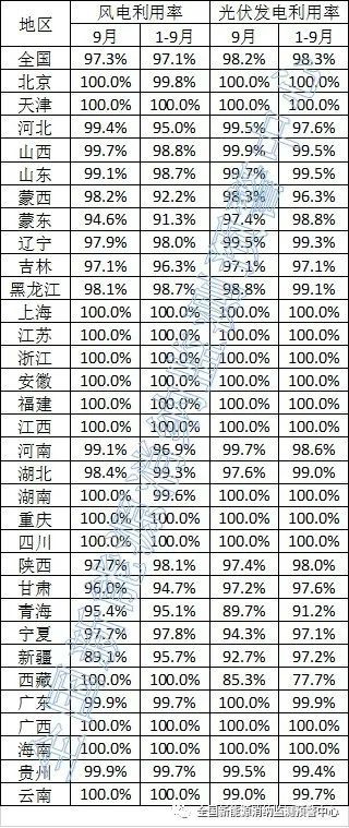 数据显示,2023年9月,全国风电、光伏的利用率分别为97.3%、98.2%;2023年1-9月,全国风电、光伏的利用率分别为97.1%、98.3%。