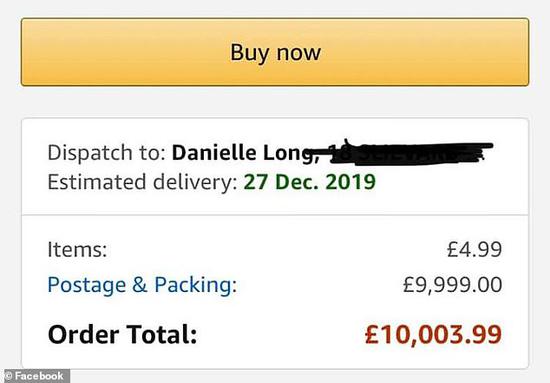 朗最终选择支付2.99英镑送货费。她将自己的经历发送到社交媒体脸书:“这太难了。我希望这是个玩笑,因为我真的希望在圣诞节前收到它。”