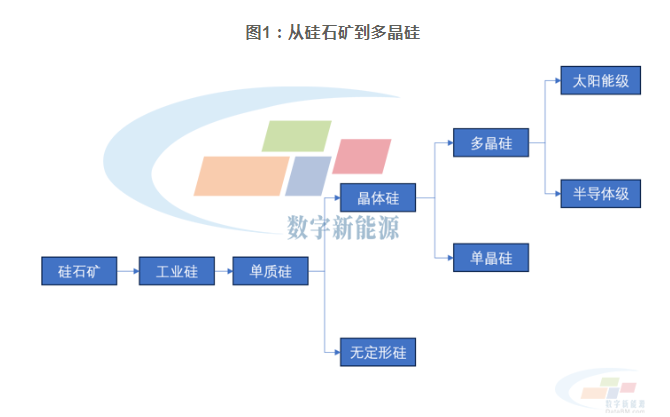 自然界没有游离态的硅,都是以氧化物形态存在。多晶硅的原材料为工业硅(Silicon metal),工业硅是从硅石矿制备而来,硅石矿包括石英砂岩、石英岩、石英砂、脉石英和交代硅质角岩等。