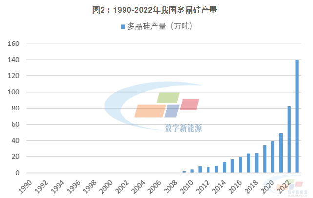 随着产能的释放,2011年我国多晶硅产量达到了8.4万吨,超过美国成为世界第一。2022年,我国多晶硅产量达83万吨,预计2023年将突破140万吨。