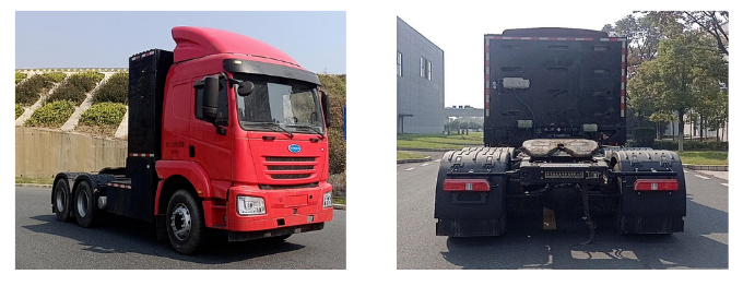 具体参数:1,储能装置单体种类/储能装置单体生产企业/储能装置总成生产企业:磷酸铁锂蓄电池/宁德时代新能源科技股份有限公司/宁德时代新能源科技股份有限公司。2,TZ400XS033型驱动电机额定功率为270kW,峰值功率为410kW。3,燃料电池类型/生产厂家:质子交换膜燃料电池/氢质氢离(北京)氢能科技有限公司。4.整备质量/驾驶室准乘人数/半挂车鞍座最大允许承载质量/准拖挂车总质量对应关系为:11100/2/13870/37870,11190/2/13680/37680,11550/2/13320/37320,12050/2/12820/36820。5,ABS系统生产厂家及型号为:广州瑞立科密汽车电子股份有限公司(型号:CM4XL-4S/4M),浙江万安科技股份有限公司(型号:VIE ABS-Ⅱ)。6,选装驾驶室顶部喷涂、导流罩、前面罩、保险杠、后桥挡泥板、摄像头、轮辋、上车踏板、车门装饰板、顶部喇叭、后视镜、导静电拖地带、储气筒布置、蓄电池位置。7.安装带卫星定位功能的行驶记录仪。8.该车型可选装直接供电式ETC车载装置。