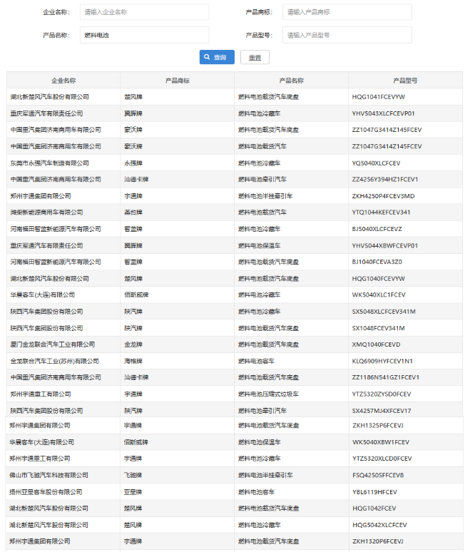 深圳市氢蓝时代动力科技有限公司的燃料电池系统配套了东莞市永强汽车制造有限公司的燃料电池冷藏车;(生产企业为中国第一汽车集团有限公司)