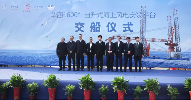 11月16日,中国船舶武汉船机总包建造的我国最新一代自升式海上风电安装平台——“华西1600” 1600吨自升式海上风电安装平台在青岛成功交付。华西海工、708研究所、中国船级社、大津重工等多家单位参加了交船仪式。