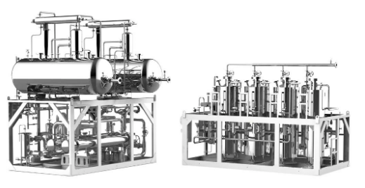 ②安装便利:采用装配式操作平台,方便安装及后期拆卸维护。分离系统由四个撬块(主框架、碱液泵框架、氢分离器框架、氧分离器框架)组成,撬块间采用法兰连接,缩短现场安装周期,保证产品质量,降低人员安装安全风险。