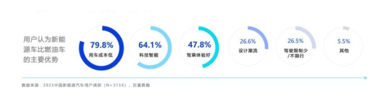 而智能化能力,也正在不断改变着燃油车时代“老司机”的心智。据巨量报告在4月发布的《中国新能源汽车趋势洞察白皮书2023》显示,科技智能已经成为新能源车超越燃油车的第二大亮点。