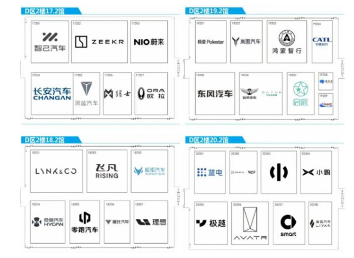 本次车展布局,主办方特意把中国新造车产业链几乎全部安排在D区,以区分智能车汽车和传统燃油车品牌的特性差异,“方便”观众集中观赏汽车智能化“大乱斗”。