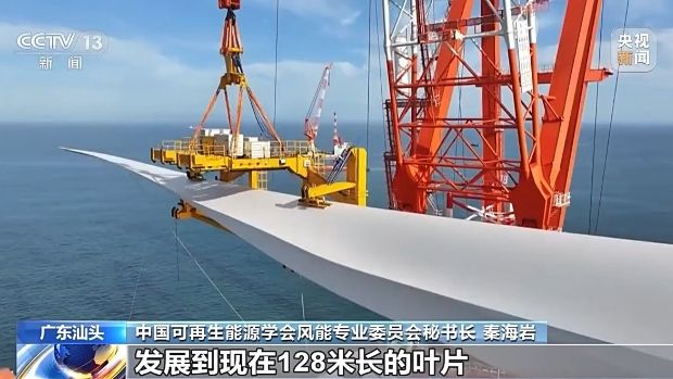 中国可再生能源学会风能专业委员会秘书长 秦海岩:我们现在已经批量生产16兆瓦的海上风电机组,马上18兆瓦的已经下线,叶片从原来四十几米长发展到现在128米长的叶片,这些都是在全球领先的。所以中国目前这个全套的产业体系从制造到建设到运维,我国已经形成完整的海上风电产业链。