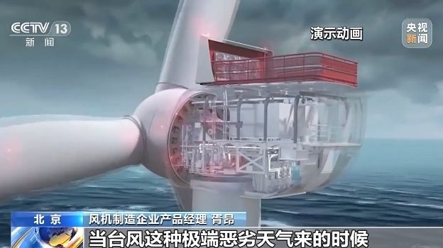 风机制造企业产品经理 胥昂:我们主要应用北斗以及5G,来实现风机最大化利用风资源,来实现发电量的提升;当台风这种极端恶劣天气来的时候,通过北斗卫星的一个信号传递,来实时控制风机的方向以及姿态,能够安全、有效度过整个台风的考验。