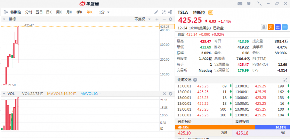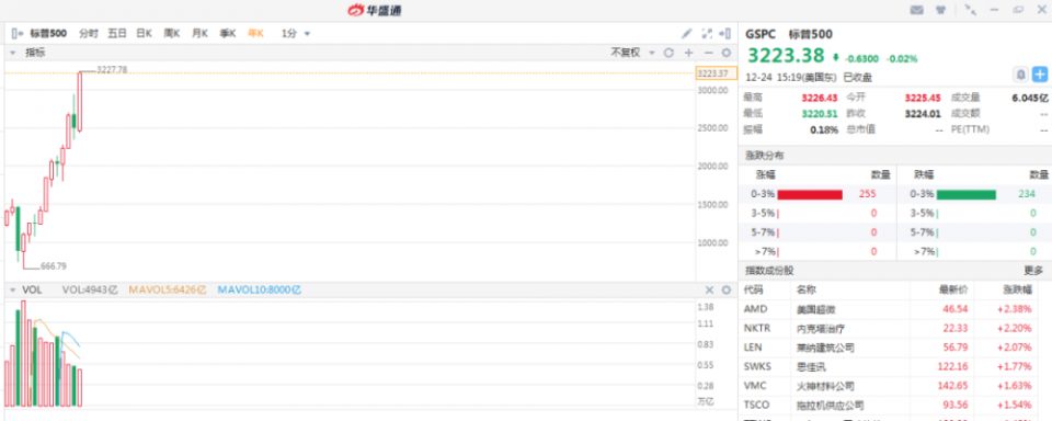 截止12月24日美股收市,标普500全年涨幅高达28.58%,道琼斯工业指数大涨22.24%,纳斯达克综合指数更是大涨34.93%。根据统计,本轮美股牛市持续时间已经是历史第一。