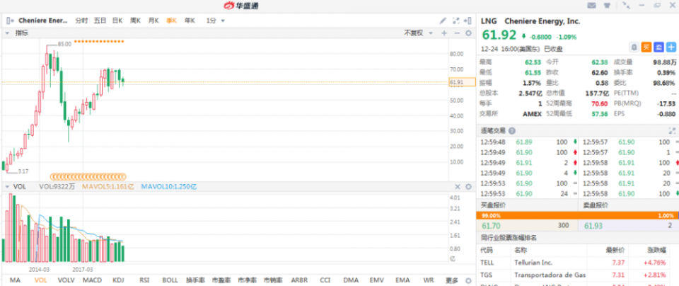 涨幅排名第七位的是美国第一家出口液化天然气的公司Cheniere能源公司,区间涨幅达22.7倍。实际上石油不是油井里唯一的产品,天然气及相关产品储量庞大,有时甚至超过采油的百分比。