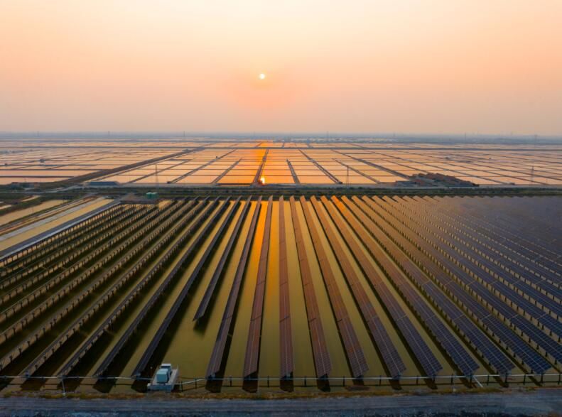 走进潍坊滨海风光储智慧能源示范基地,波光粼粼的盐池水面上,一排排光伏板、一座座逆变器机组整齐排列,与蔚蓝的天空交相辉映,宛若一片盛放在广袤盐田上的光伏“蓝海”,在阳光的映照下熠熠生辉,勾勒出一派科技创新与生态环境相得益彰的生态画卷。