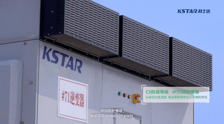因卤水含盐浓度较高,酸性较强,对光伏设备的防腐性能提出了极其严苛的要求。在综合对比下,科士达GSM3125D-MV35逆变升压一体机以其高发电、防腐、防护等性能脱颖而出,成为潍坊滨海风光储智慧能源示范基地一期300MW光伏发电项目的最佳选择。