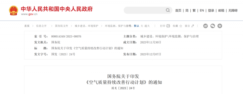 国务院关于印发《空气质量持续改善行动计划》的通知