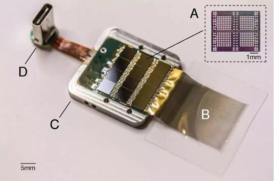 实际的商业应用也不再虚幻,现代晶圆级微加工工艺使得医用器件的高通量制造成为可能。每个晶圆上绘制了10个薄膜器件,而每个薄膜器件具有3072个电极触点。每个阵列由48或96个线程,每个线程包含32个独立电极。采用倒装芯片键合工艺将集成芯片键合到薄膜传感器区域中的电极触点上。