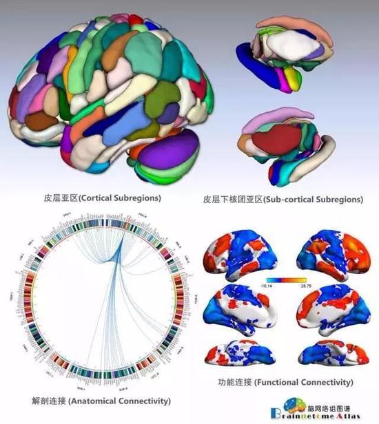 2016年6月,中科院自动化所脑网络组研究中心绘制出了一张全新的人类脑图谱,包括246个精细脑区亚区,以及脑区亚区间的多模态连接模式。