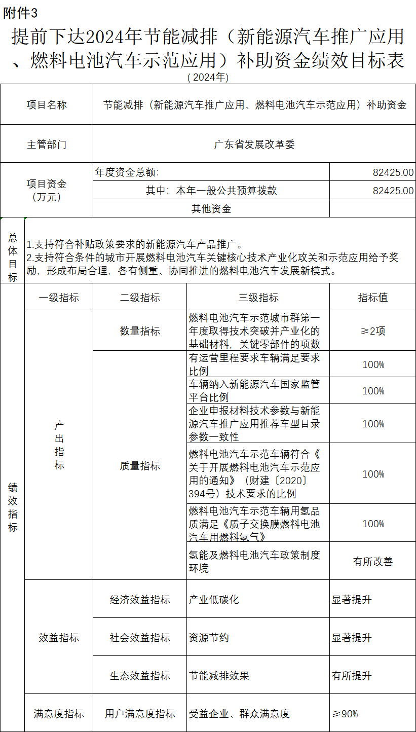 3.提前下达2024年节能减排(新能源汽车推广应用、燃料电池汽车示范应用)补助资金绩效目标表