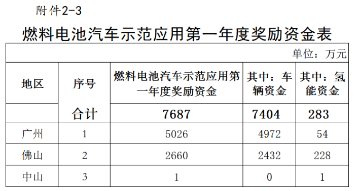 2-3.燃料电池汽车示范应用第一年度奖励资金表